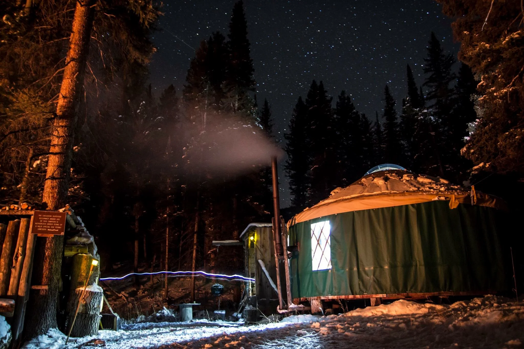 For the 2025 season the minimum rate of $480/night applies for up to eight guests, $60 for each additional person. Additional kids from six to twelve are $25/night. It is required that at least one member of your group be familiar with the route, access and correct hut operations. If this is your first visit to the Boulder Yurts, we recommend that you hire a Hut Rent Orientation ($270) on Day One of your trip. The Hut Master will lead your group to the hut and orient you to the facilities and how they function before leaving you to pursue your own personal skiing for the remainder of your stay.